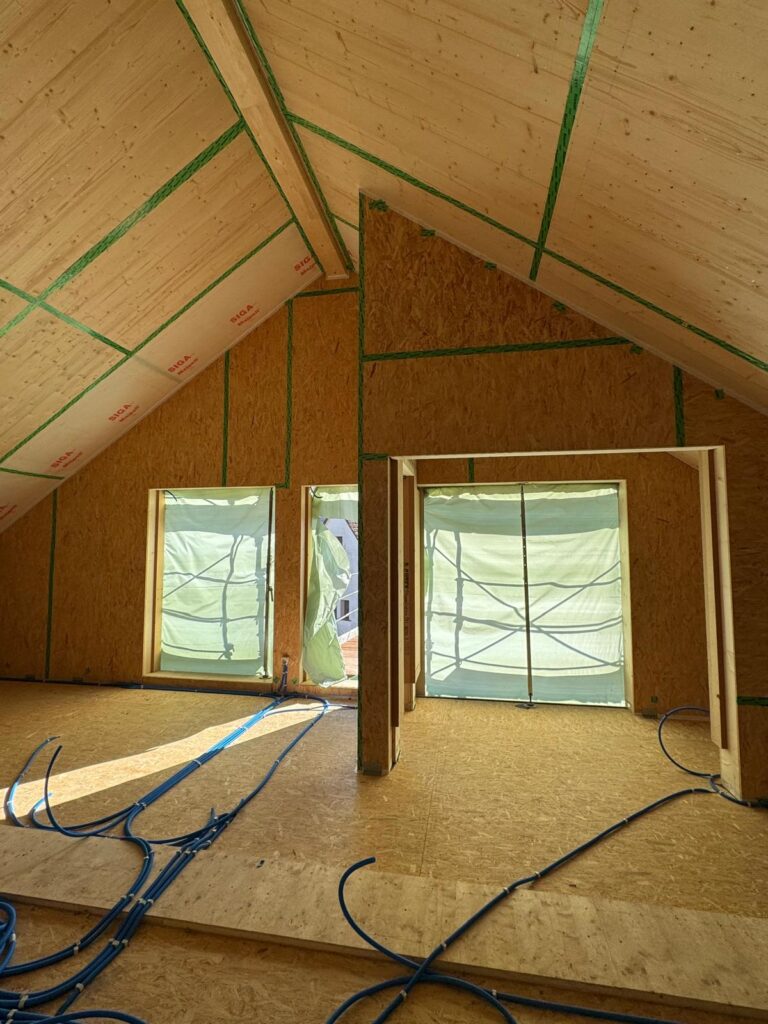Dank der Holzbauweise wachsen die Gebäude schnell und effizient. Mit jedem Bauabschnitt wird deutlicher: Hier entsteht Wohnraum mit einem warmen, natürlichen Charakter.